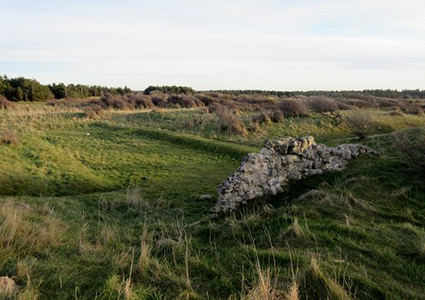murkerne bevaret, mens resten af kirkebygningen er markeret med lave volde af græstørv.